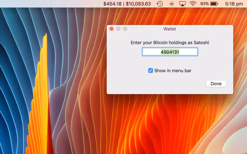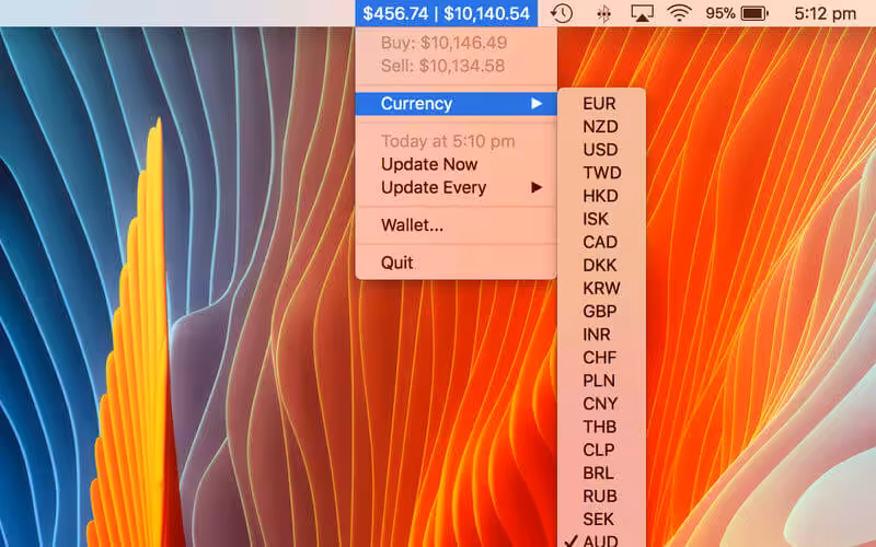 This menu bar application will keep you up to date on Bitcoin prices in 22 different currencies. Choose from several different update intervals and add your wallet holdings to keep track of your personal value in any supported currency.