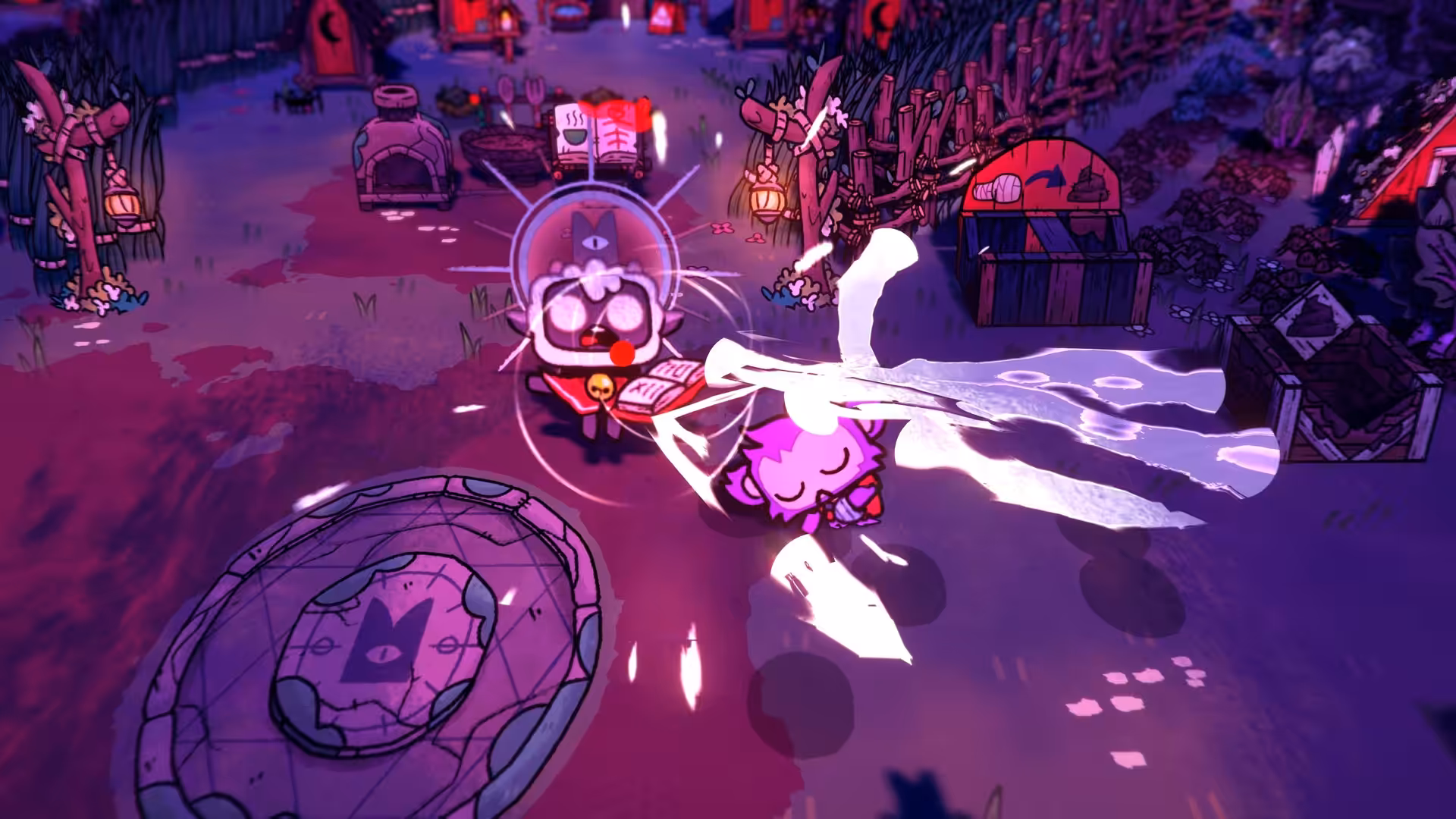Cult of the Lamb casts players in the role of a possessed lamb saved from annihilation by an ominous stranger and must repay their debt by building a loyal following in his name. Start your own cult in a land of false prophets, venturing out into diverse and mysterious regions to build a loyal community of woodland Followers and spread your Word to become the one true cult.