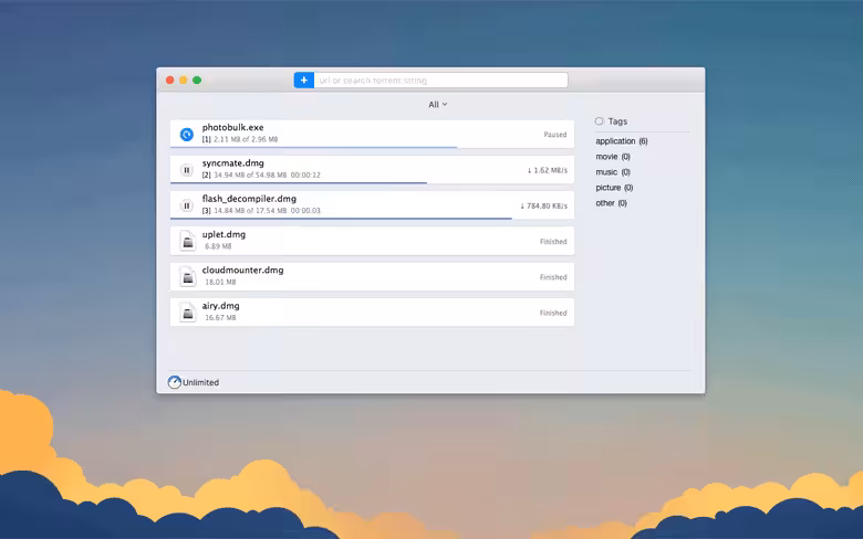 Folx Pro combines two functionalities – a download manager and a torrent client. It offers convenient downloads for managing, flexible settings, etc. Its auto-resume option comes in handy when the download gets interrupted. You can also assign one or more tags to the downloaded content for an accurate and easy search through the downloaded files.