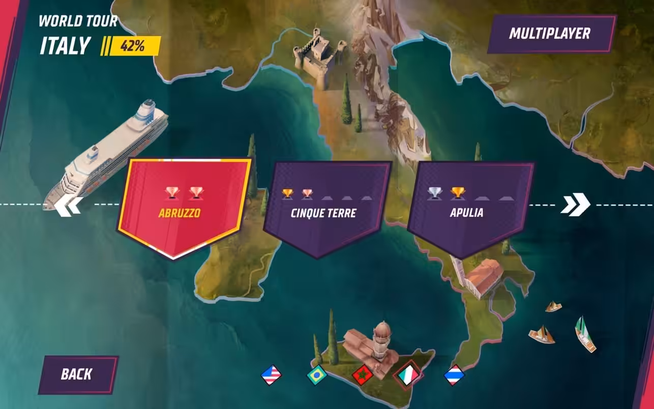 Collect new cosmetic items, and upgrade your stats throughout the World Tour. Race in different Game Modes and keep on the cycle of getting new visual rewards. Winning was never so worth it.
