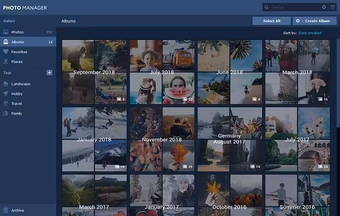 - Automatic Album Creation: Movavi’s photo organizer will automatically sort your images by date and GPS coordinates.