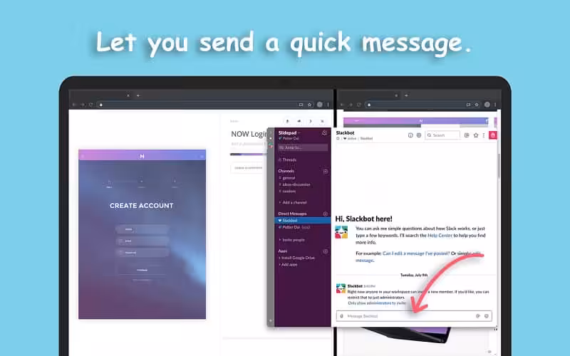 Slidepad is a slide-over browser that will magically boost your productivity. Inspired by the slide-over feature on iPad, Slidepad allows you to quickly take notes or send a chat message without having to switch between different windows or workspaces. An iPad-style slide over the window for your web apps. No more hassle of window switching. Unlike other similar apps, there is no limit on what can be placed on Slidepad. You can type any keywords and URLs like what you do in common browsers!