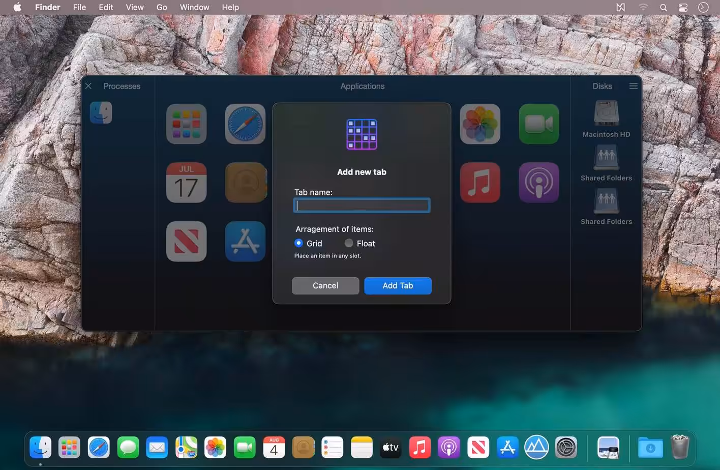 - Add tabs to keep your applications, documents, music, and folders.