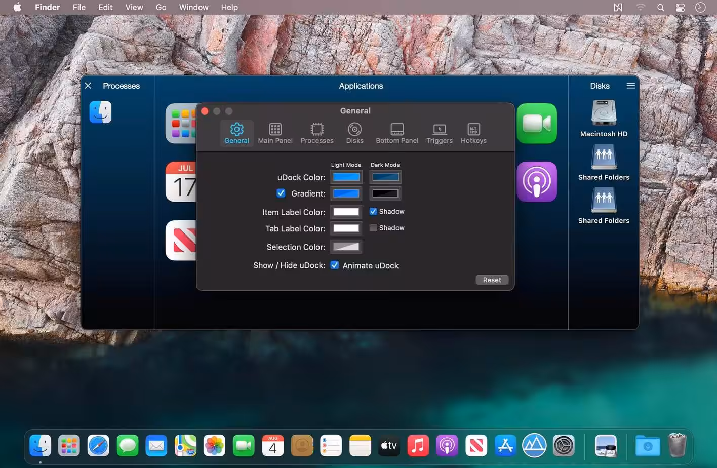 - Use a keyboard shortcut or mouse hotspot to activate μDock.